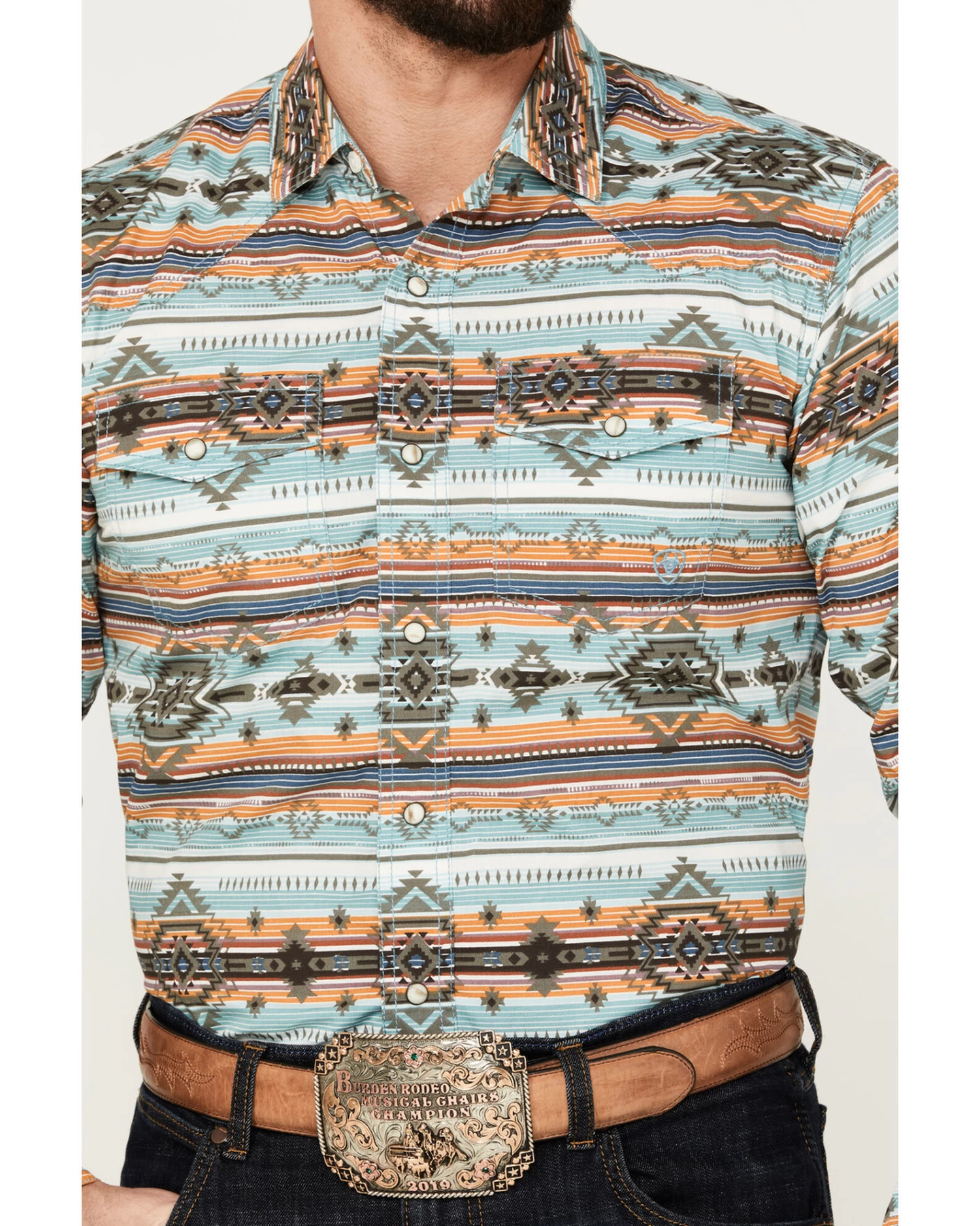 - Multicolored Southwestern print striped design