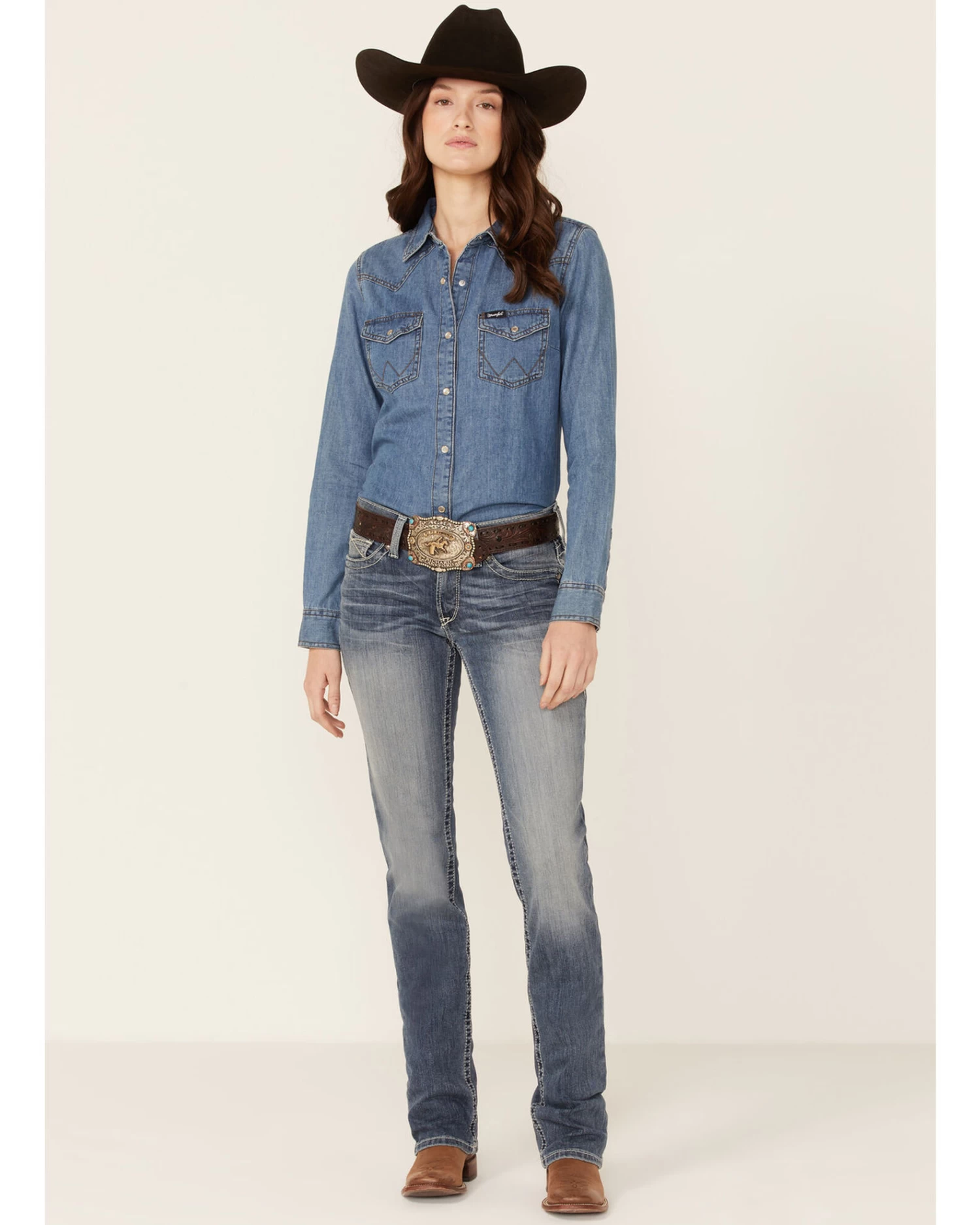 - Dual-color back pocket embroidery