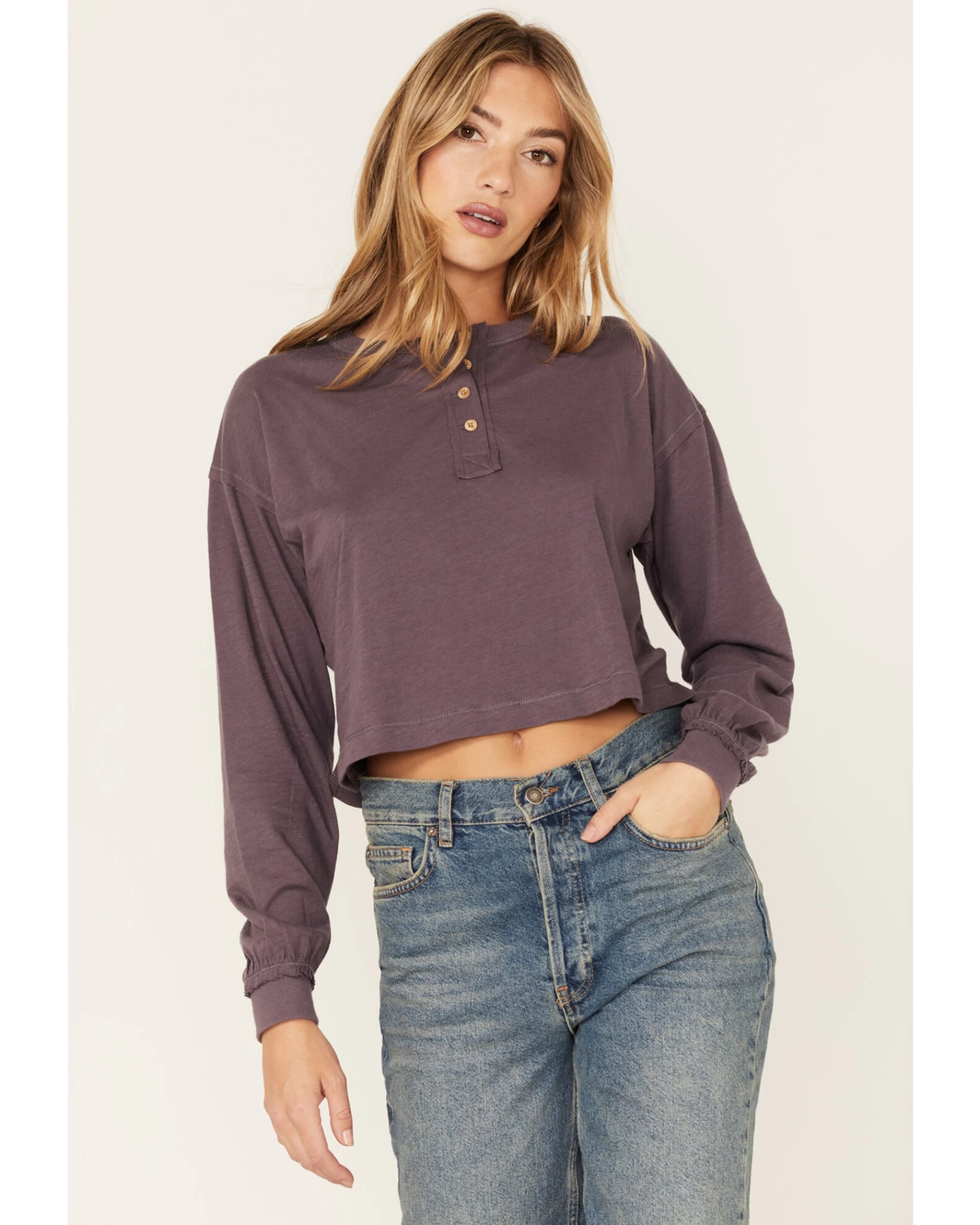 Cleo + Wolf Women’s Boxy Boyfriend Long Sleeve Henley Shirt