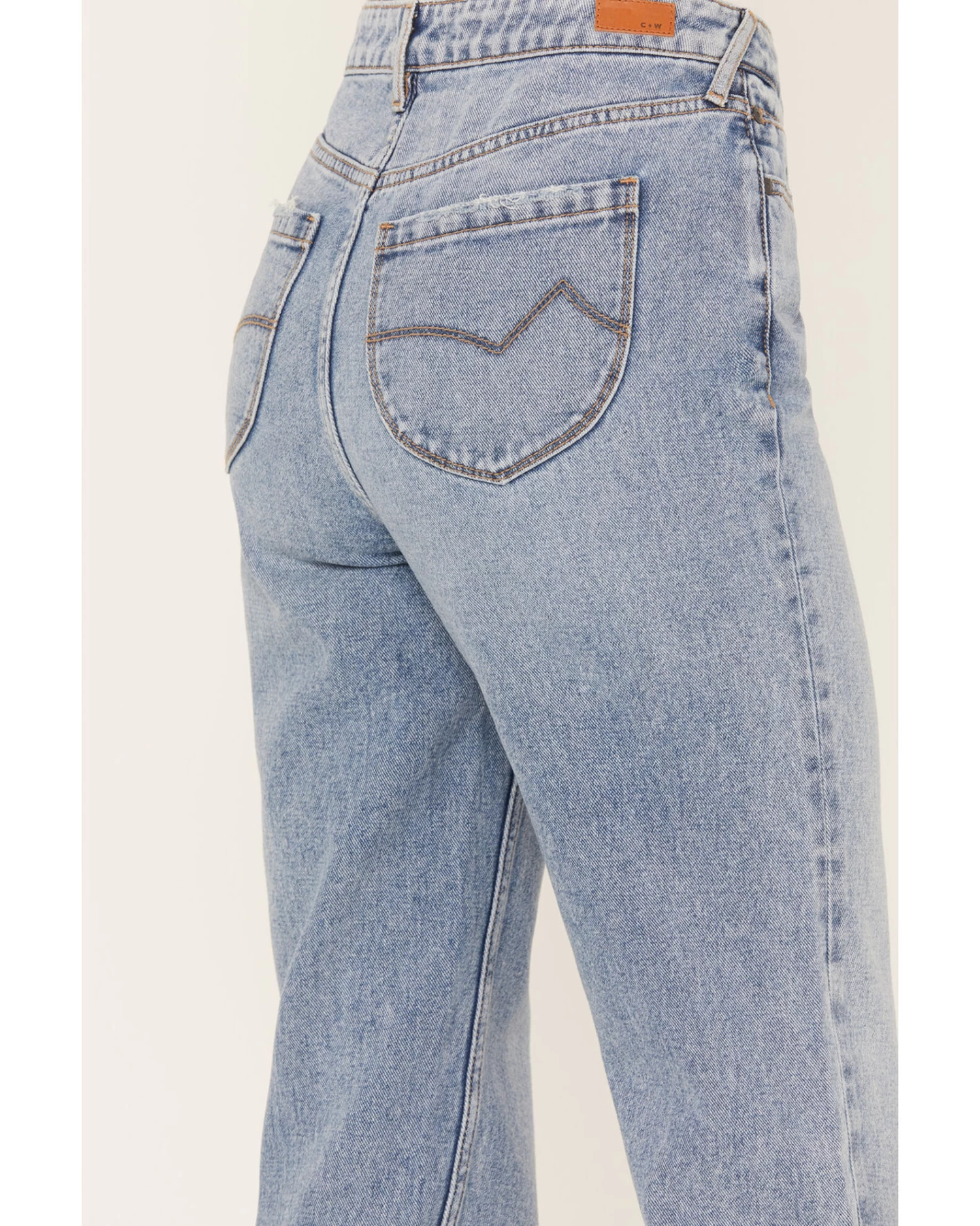Cleo + Wolf Women’s Medium Wash Short Straight Cuffed Jeans