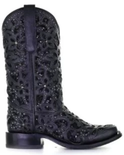 Corral Women’s Black Overlay & Studs Western Boots – Pointed Toe