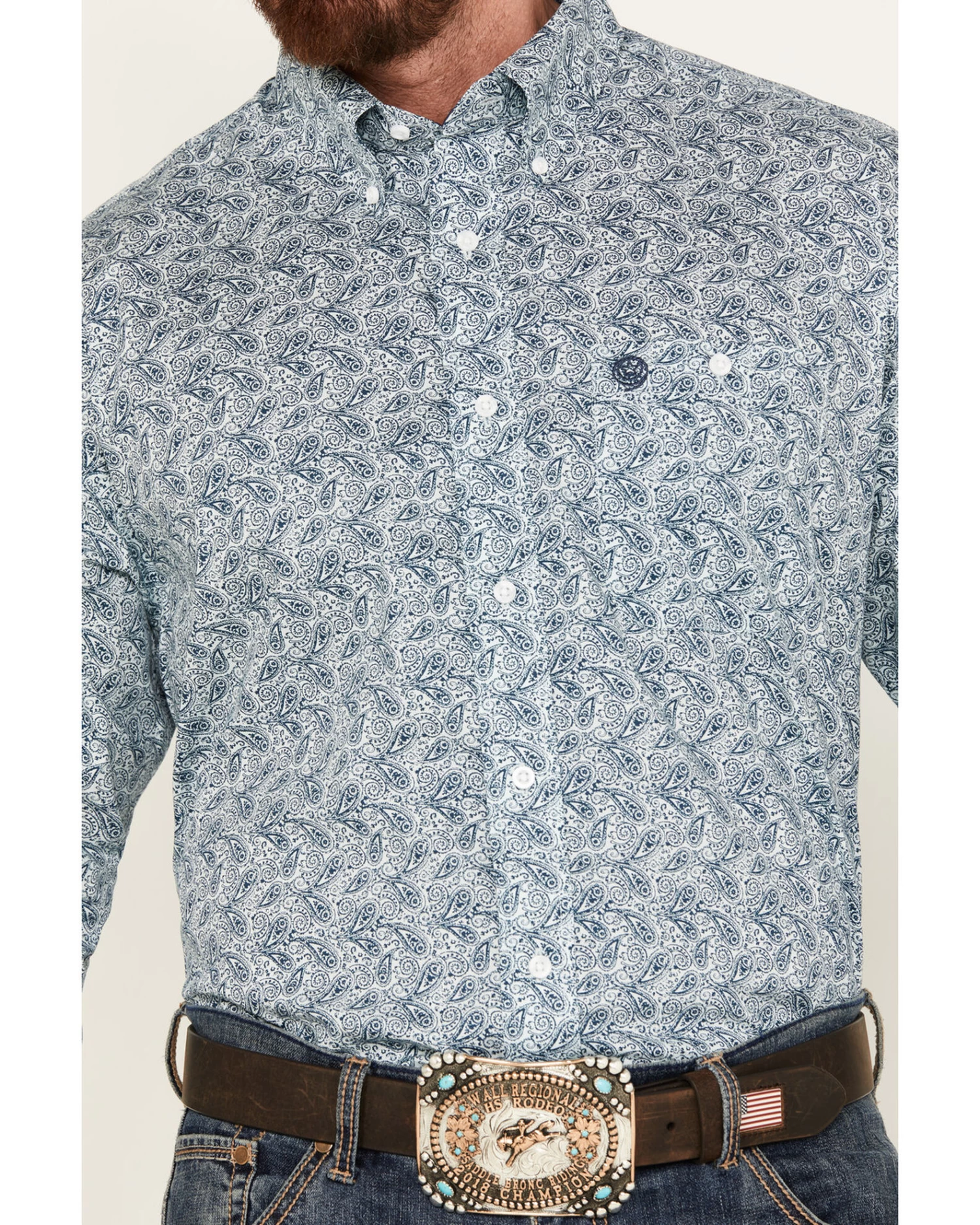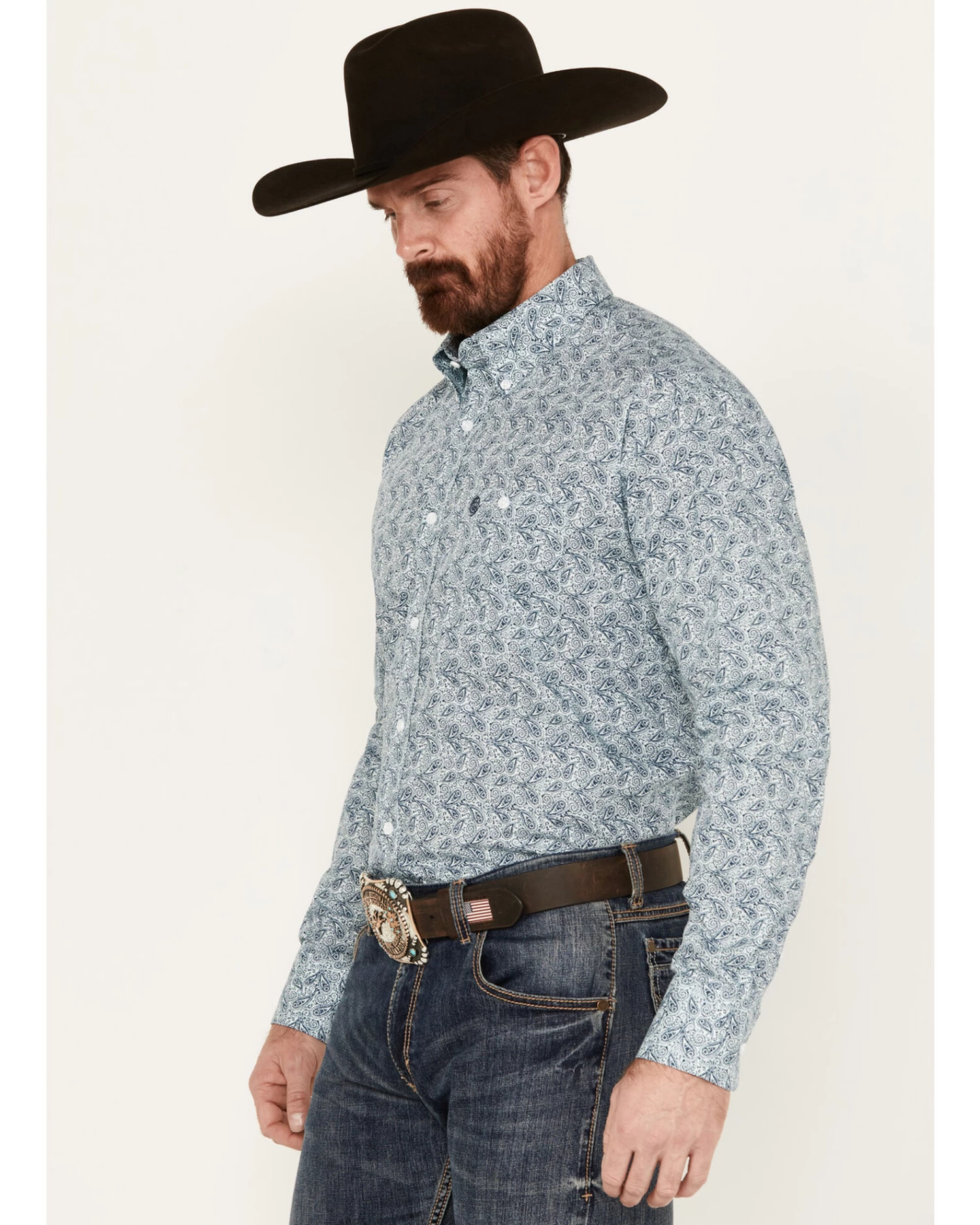George Strait By Wrangler Men’s Paisley Print Long Sleeve Button-Down Western Shirt – Tall