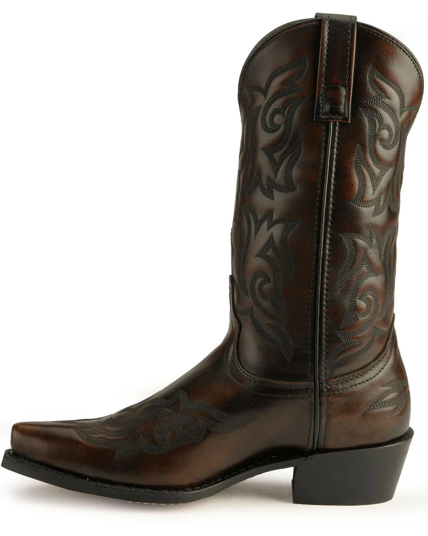 The Hawk western boots by Laredo put a modern twist on a classic style. These western boots are constructed with a leather vamp and leather-like shaft and they are detailed with a fancy stitch pattern from top to bottom. The hinged cushion insole offers underfoot comfort no matter what the day brings. The composition outsole is highly abrasion resistant, providing longer wear. Get out in style with the Hawk boots from Laredo.