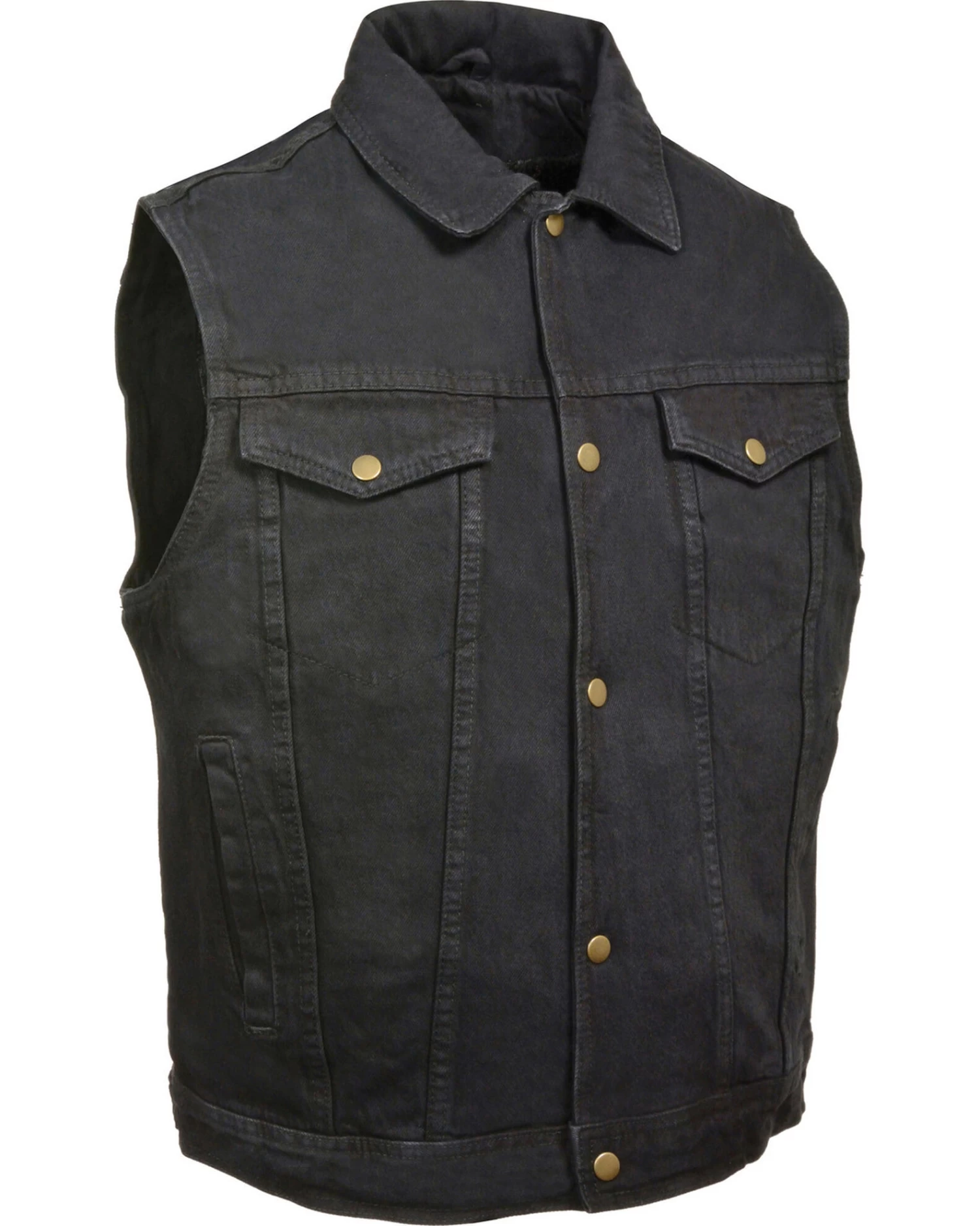 Milwaukee Leather Men’s Snap Front Denim Vest With Shirt Collar