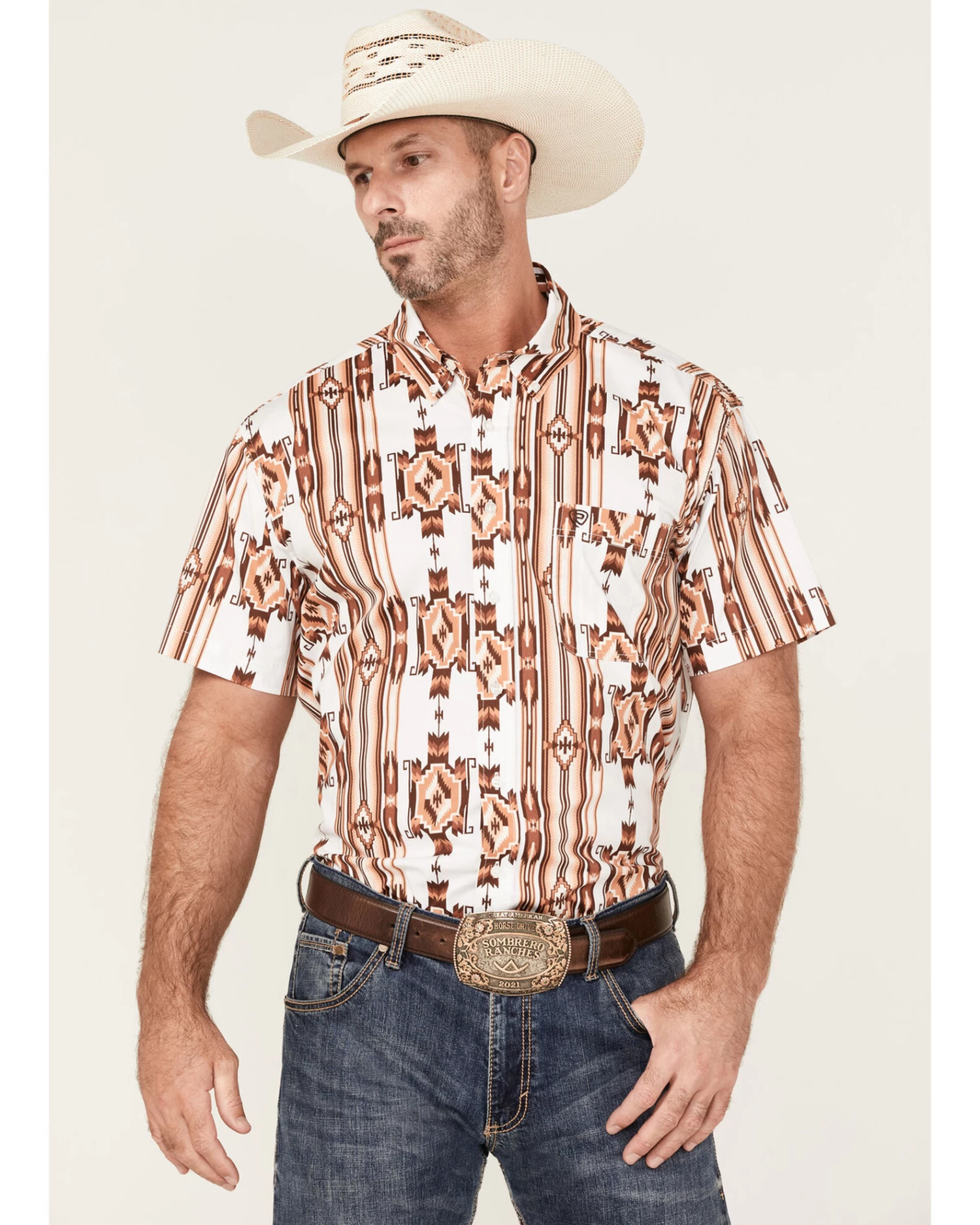 Rock & Roll Denim Men’s Vertical Southwestern Stripe Short Sleeve Button Down Western Shirt