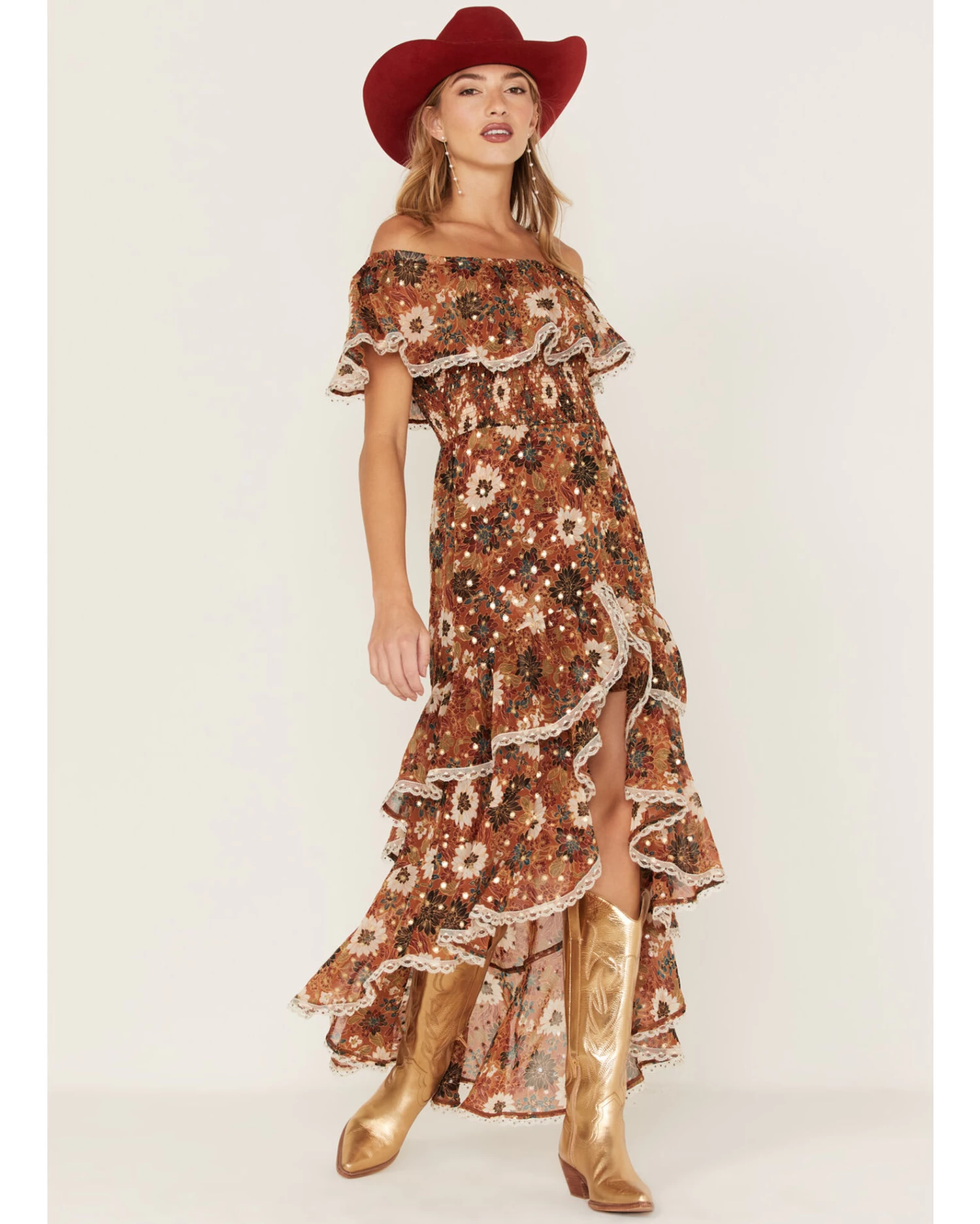 Shyanne Women’s Floral Print Off-Shoulder Ruffle Maxi Dress