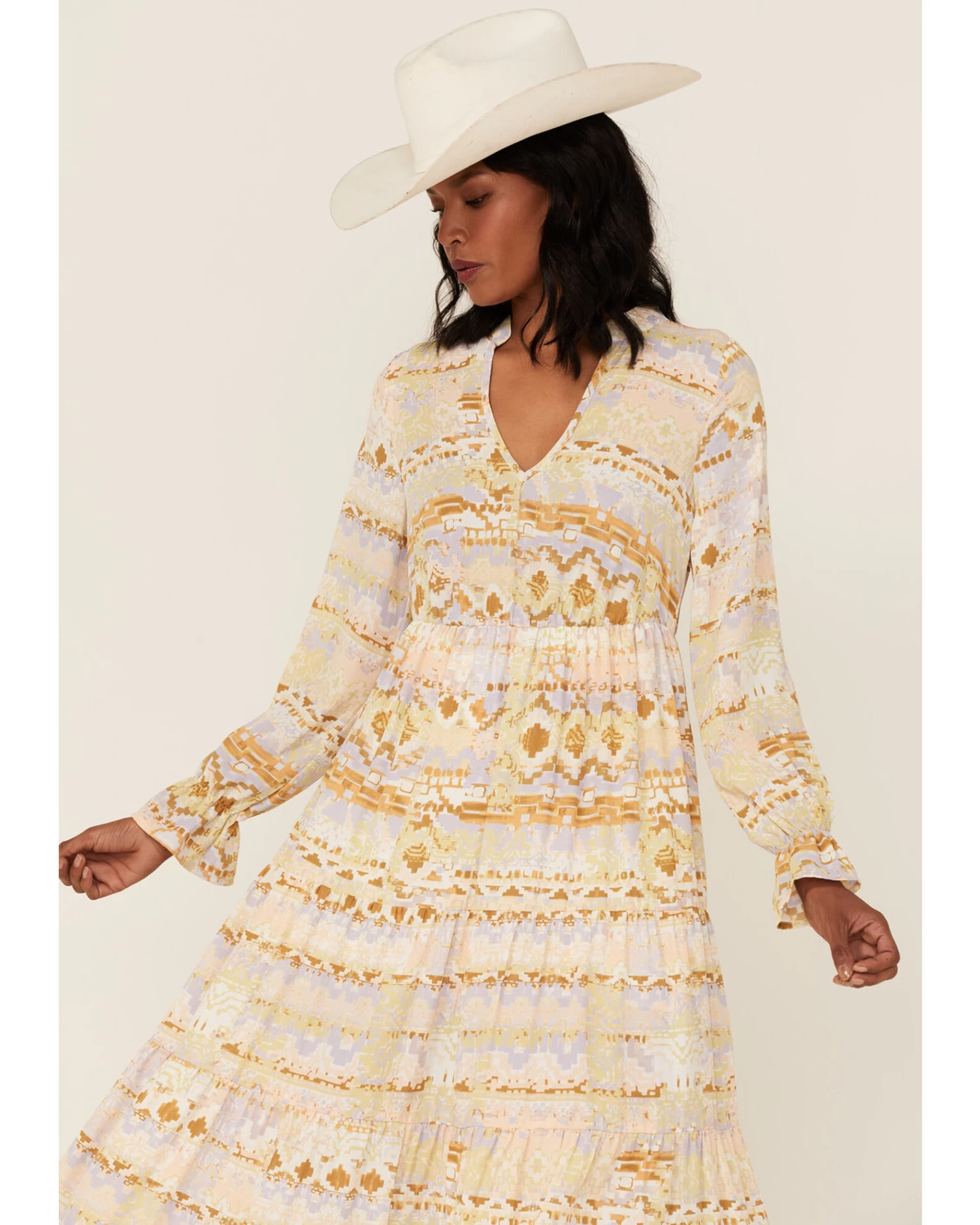Shyanne Women’s Watercolor Southwestern Maxi Long Sleeve Dress