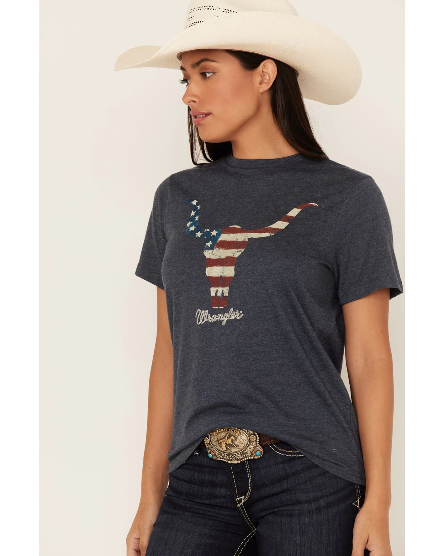 - Navy with Americana steer head and logo graphic on front